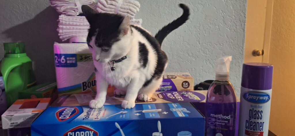 Now, instead of having a gnarly-looking rag mop, I have a proper Swiffer Power Mop for my wood flooring, which is most of the flat. Instead of having a ton of old and unusable cleaners for things I don’t even have (like stone/granite cleaner, pool cover cleaner (what even is that?), and things people gave me “just in case” when I moved in, which has led to a lot of anxiety in regards to throwing away), I now have cleaners specific to my flat’s needs — no more, no less. Like I am ready to make my house look amazing. I even got some essential oils and Lysol sprays to round out the setup. The only thing I could not find was a better litter box and a trash can that I found appealing. I was also hoping to find a fountain style water dispenser for Tommie (since she loves to drink straight from the tap), but I did not see anything. Actually, I think I found this one, and will go look at it tomorrow morning.